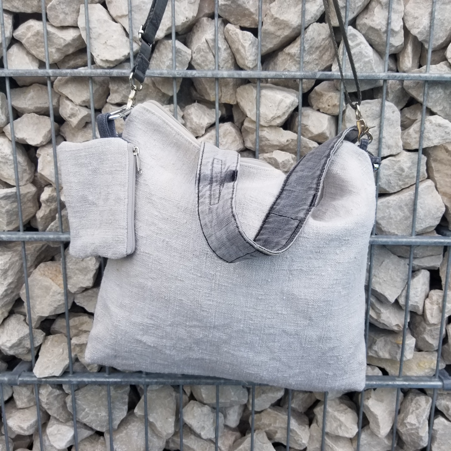 altes LEINEN mit Jeans UPCYCLING – Gymbag